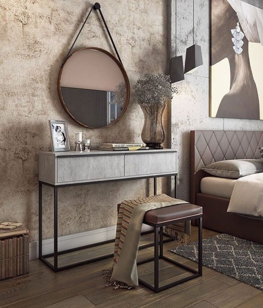 При наличии ниши или гардеробной стоит рассмотреть возможность установки в этих местах. Нередко туалетные столики располагают около кровати вместо прикроватной тумбочки.
